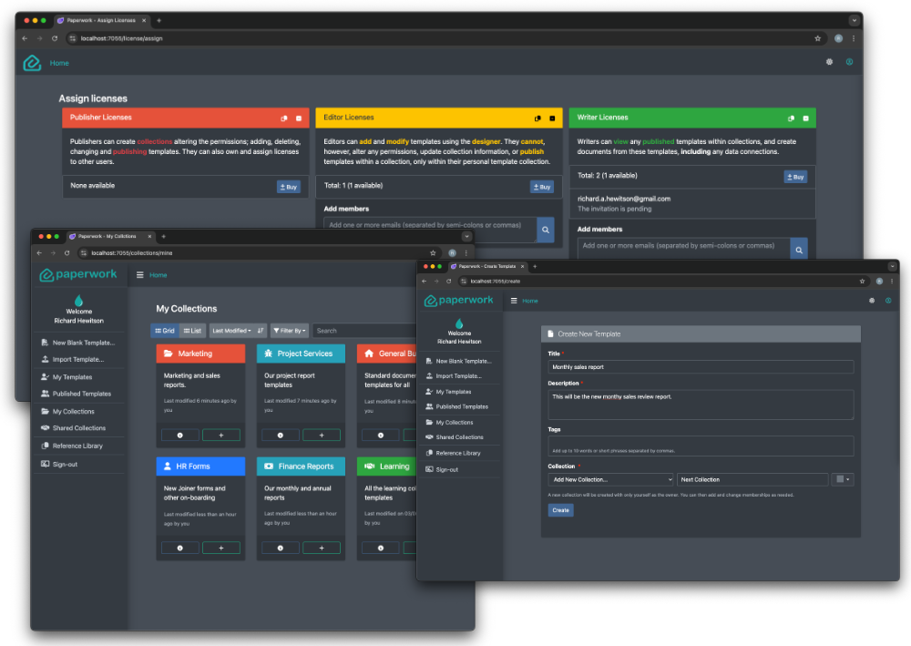 Want to restrict access to your templates? Assign writer and editor roles to specific individuals? Group related templates into collections by purpose of business function, then this is the once for you! It comes with unlimited Writer roles (can complete forms and create documents), along with 2 Editors who can customise and design templates, and 1 publisher who is the only person who can make new templates live.